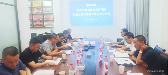 2025年9月23日,徽州区建筑业协会会长李苏云率方泽华、马明桂、罗利群等一行5人赴屯溪区建筑业协会开展学习交流活动,屯溪区建筑业协会轮值会长许传伦及协会班子成员叶景峰、汪乐平、程诚、李利成、汪德利等参加交流座谈。